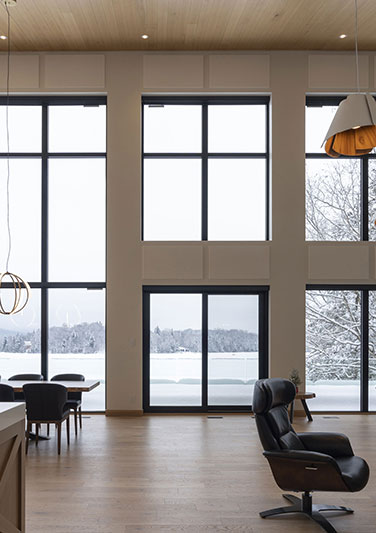 Découvrez la fenêtre fixe de la série Distinction de Caron & Guay, une véritable référence en matière de design minimaliste. Conçue entièrement en aluminium, elle se distingue par sa robustesse exceptionnelle et sa force structurale, permettant la réalisation d’imposants murs- rideaux qui maximisent l’apport de lumière naturelle.